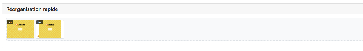 | Changer l’ordre | Section Réorganisation rapide (drag & drop) |