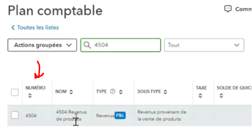 Pour QuickBook, il faut prendre l'information dans la colonne "Numéro"